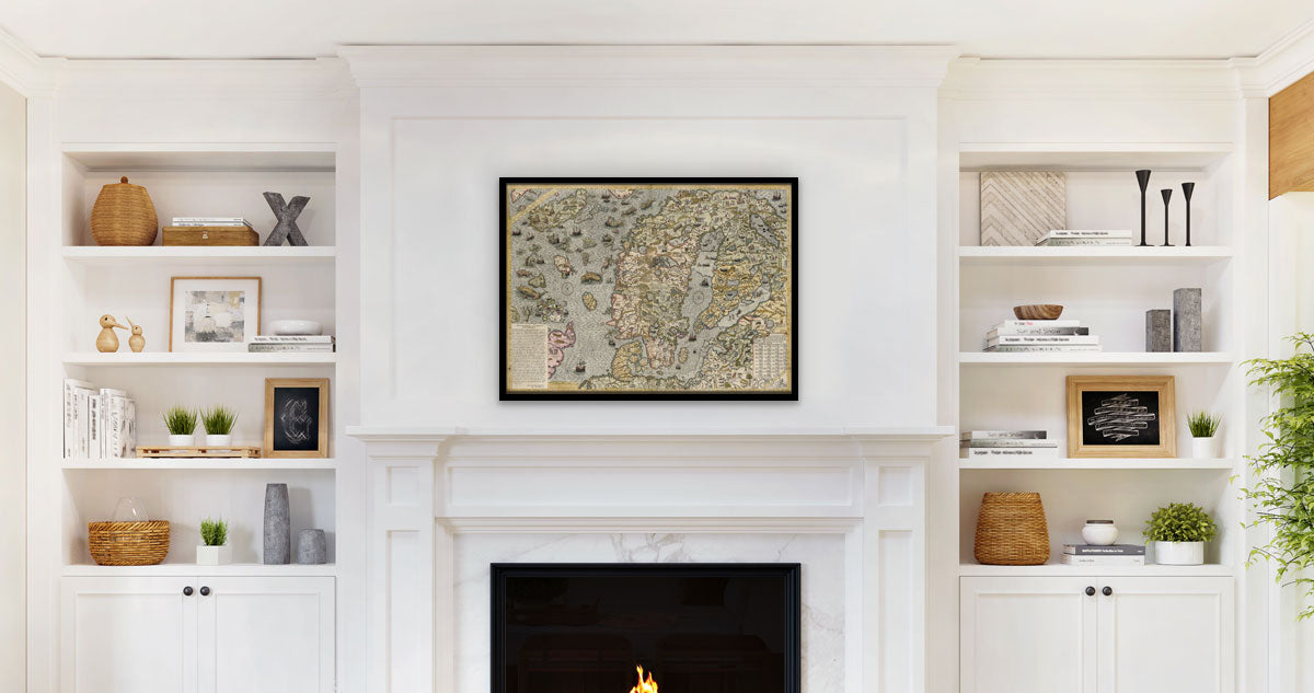 The Carta Marina is a map of Scandinavia. It was made in Rome by a man named Olaus Magnus. The Swedish Olaus Magnus was a Catholic ecclesiastic and a writer who is best known for his monumental work “A description of the Northern Peoples”.