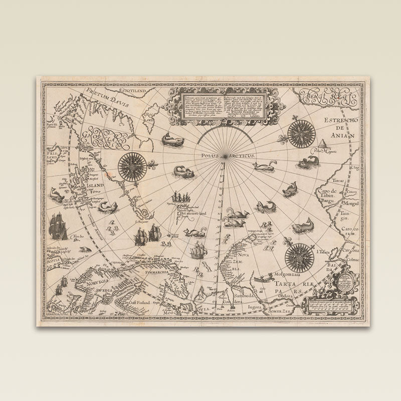 Also known as the Map of the Strete of Anian, this is Willem Barentsz' landmark map of the Arctic region.